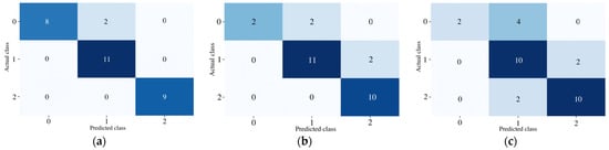 Figure 6. Confusion matrixes for separate systems: (a) cardiovascular; (b) muscular; (c) neural.