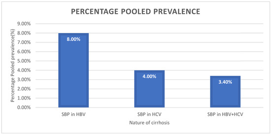 This systematic review and meta-analysis aimed to determine the global prevalence of SBP in HBV and HCV liver cirrhosis. The findings of this review were based on the data collected from three categories of viral hepatitis cirrhosis (liver cirrhosis caused by HBV, liver cirrhosis caused by HCV, and liver cirrhosis caused by both HBV and HCV) globally.