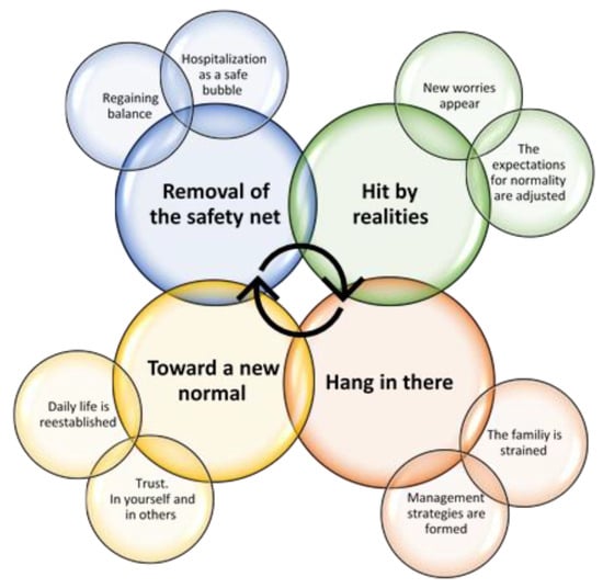 The families reported that, during the hospitalization, they had looked forward to coming home. They had an expectation that everything would fall into place when they were back in their known environment. Quite a few parents had other children and, thus, needed to navigate hospitalization and normal daily life with school and leisure-time activities simultaneously. These families were especially eager to be discharged so they could reunite with their families. The ability to eat according to your own preferences was also frequently mentioned as something that would make everything easier outside the hospital. However, when the families eventually returned home, they realized they were now on their own.