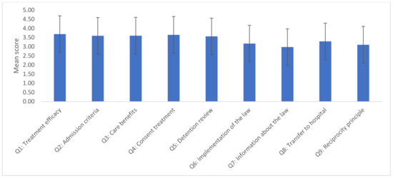 - Question (Q)1 (treatment efficacy): The legislation operates well in ensuring treatment for persons who require involuntary admission.