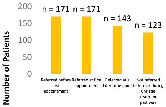 Approximately 80% of patients were referred to community palliative care services, either prior to being seen in the cancer centre or at some time-point in their treatment pathway (Figure 3).