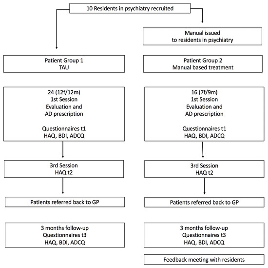Ten psychiatry residents working in a university psychiatric department’s special outpatient clinic for antidepressant pharmacotherapy agreed to participate in this pilot study (Figure 1).