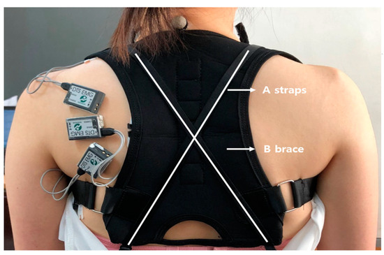 - Leung, M.; Kan, M.M.; Cheng, H.M.; De Carvalho, D.E.; Anwer, S.; Li, H.; Wong, A.Y. Effects of Using a Shoulder/Scapular Brace on the Posture and Muscle Activity of Healthy University Students during Prolonged Typing—A Randomized Controlled Cross-Over Trial. Healthcare 2023, 11, 1555. [Google Scholar] [CrossRef]