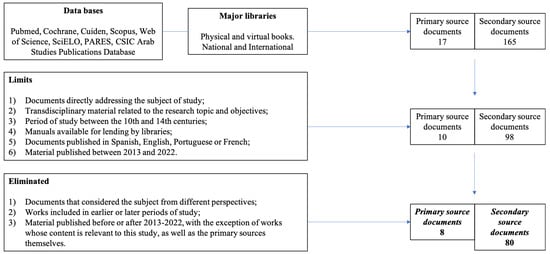 | PubMed Cochrane Cuiden Scopus Web of Science SciELO PARES CSIC Arab Studies Publications Database | history of nursing AND midwives nursing AND midwife midwife AND requirements AND Muslim history women doctor AND Muslim history history of nursing AND gender AND legislation midwife AND traditional medicine midwife AND Quran Middle Ages and nursing | Last 10 years Article English/Spanish | Training Requirements to practice Social assessment Segregated domestic area Legal area Physical, psychological, and sexual care |
