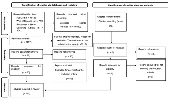 - Centre for Reviews & Dissemination. Systematic Reviews: CRD’s Guidance for Undertaking Systematic Reviews in Healthcare; Centre for Reviews & Dissemination: York, UK, 2009. [Google Scholar]