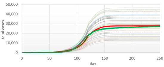 In this regard, several authors have considered stochastic models of the spread of COVID-19 [38,39,40,41,42,43,44,45,46]. Various scenarios of preventative measures were considered in stochastic ABMs, including the environment’s influence on the spread of COVID-19 [18,46]. One of the advantages of the stochastic model is that it considers various COVID-19 properties, such as the unpredictability of sudden outbreaks of disease, long periods of asymptomatic courses, and sudden declines followed by bursts [47].