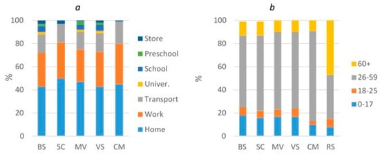 By social contact, we mean close contact over time with a certain number of people. This could be relatives or people meeting at school, on transport, in a shop, or at work. Brief contact between people in other public places was also considered. We assumed that schools, preschool institutions, shops, and clinics were within walking distance, whereas university students used public transportation. Preschoolers, pupils, and university students were in contact with their groups and classes. Working contact was observed among persons 26–60 years old. According to the classifications existing in Kazakhstan, we distinguished between small, medium, and large enterprises. Their number corresponds to statistics. We conducted the filling of enterprises randomly. We assumed that for non-working persons, the public places they visit are mainly outpatient clinics, convenience stores, and shopping centers where transmission of infection from carriers to healthy persons can occur. Other infection sources include their family, public transport, work, and educational institutions.