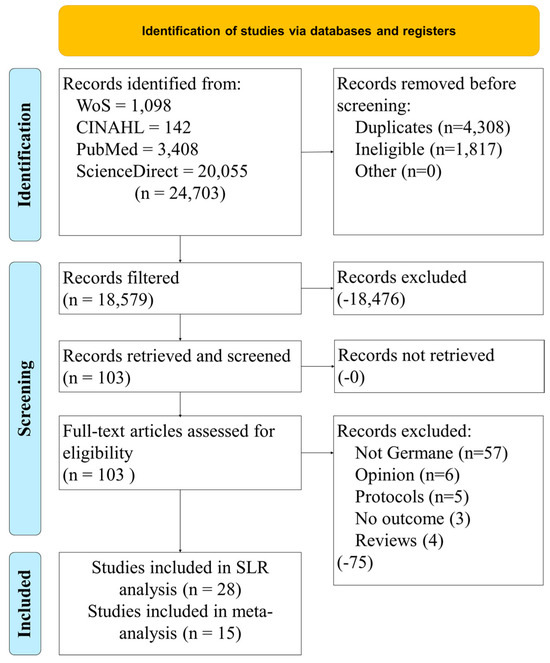 Figure 1 provides the study selection process to include the inclusion and exclusion criteria from the four research databases. A kappa statistic was calculated based on the levels of agreement between reviewers (k = 0.83, strong agreement). Twenty-eight studies were selected for the systematic literature review. Based on the data provided in these articles, only 15 qualified for the meta-analysis.