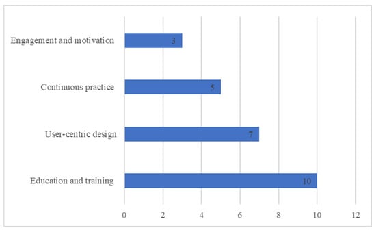 Frequency of solutions and recommendations to overcome barriers related to the intention to use mHealth among the elderly.