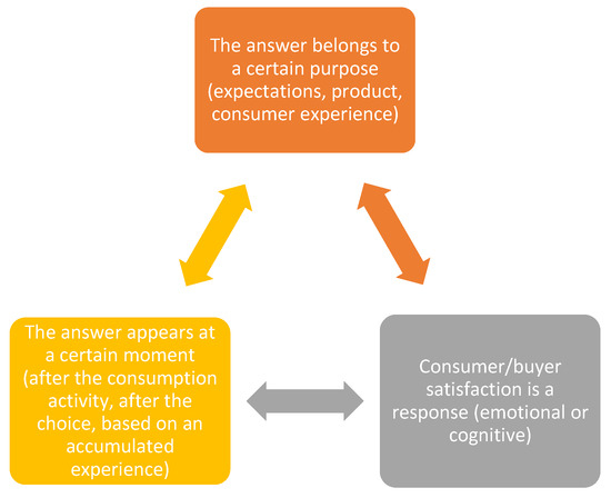 All definitions for consumer satisfaction contain some common elements. When analyzed as a whole, three general components can be identified [26,27,28,29,30].