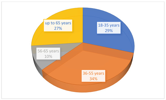 Among the 722 people involved in this study, most patients were between 36 and 55 years old (Figure 4). This high percentage is explainable because in this age range, there are people who have children or the elderly in their care, and, of course, they will buy medicines both for themselves and for the whole family, especially in the case of women. The lowest percentage was for people between 56 and 65 years old, when the state of health is not deeply affected, purchasing only treatments for themselves. After 65 years of age, health is more precarious, and implicitly they will need more extensive medication.