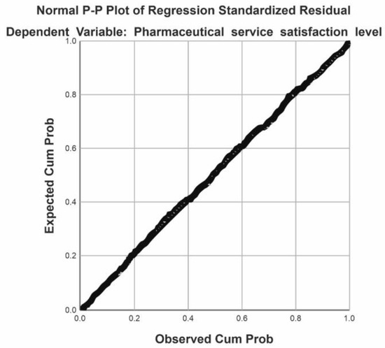Graphic representation of the regression for the satisfaction variable towards pharmaceutical services, a predictor of the frequency of visits to the pharmacy.