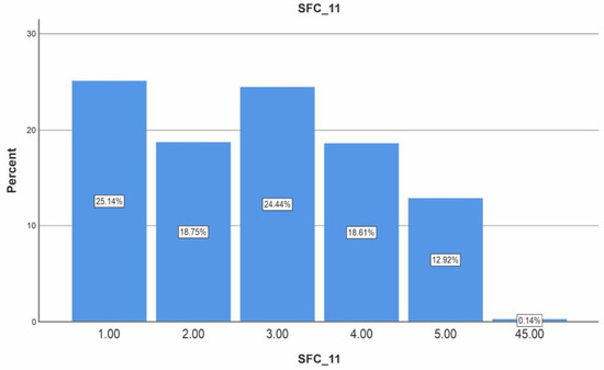 The results of the question “For me it is important that the pharmacist has at least 10 years of experience.” (1 strongly disagree, 2 disagree, 3 neutral, 4 agree, 5 strongly agree). SFC 11 means the abbreviation of the name of the specific questionnaire, satisfaction, question number 11.