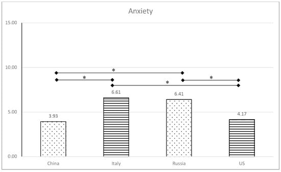 Levels of anxiety in the four countries. * p < 0.008.