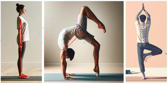 Correct posture alignment is crucial in the practice of yoga. Posture is essential for all forms of exercise, but it is particularly critical in yoga to obtain the benefits and prevent yoga-related sports injuries. Yoga encompasses a range of practices, including yoga poses known asanas, breathing and mindfulness exercises (pranayama and yoga nidra), and meditation. Yoga’s popularity has grown due to its potential positive outcomes in terms of physical performance and well-being [6,7]. As we live in a fast-paced society, yoga has become an increasingly popular form of exercise. Many people find yoga to be a valuable retreat from their hectic and busy lifestyles. Yoga, which comes in many forms, includes the popular style of Hatha, a blend of various styles that emphasizes physical exercises over still, meditative practices. The focus of Hatha yoga is on Pranayama, or breathing exercises, which are closely related to breathing biofeedback using auditory cues [8]. Yoga is primarily practiced for physical and mental well-being. According to their needs, people practice different kinds of yoga, such as prenatal yoga, baby yoga, children’s yoga, hot yoga, couple yoga, and seniors’ yoga. Yoga postures are commonly performed in all different practices. Many studies have demonstrated that yoga improves and optimizes the sports performance of athletes [9,10]. Activities that increase athletic performance are critical to maximizing training opportunities. As sport is a multidimensional endeavour, athletes may consider taking part in activities that optimize the specific dimensions of fitness as well as the aspects of performance in multiple dimensions [6].