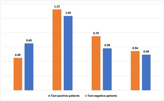 Descriptive statistics were produced for all variables, with absolute numbers and percentages for categorical variables, and mean and standard deviation for continuous variables. We performed chi-square tests for categorical variables and t-tests for continuous variables to compare test-positive and test-negative patients. We then performed univariate analyses to compare the prevalence of the outcome variables in both groups. For each outcome, we performed a multivariable analysis using a logistic regression analysis with two blocks, the first using the ENTER approach for baseline characteristics, and the second the FORWARD approach for all other variables. The ENTER approach inserts all the variables into the model, whereas the FORWARD approach inserts only the significant variables into the model. For the multivariable analysis, we assessed the goodness-of-fit of the model with the Hosmer–Lemeshow method. In addition, to assess whether multicollinearity exists, we used the variance inflation factor (VIF). We used the Statistical Package for Social Sciences (SPSS) software, version 27, for data analysis.