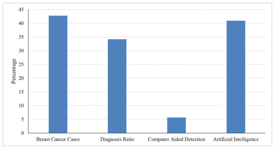 Figure 1 shows the average ratio of increasing breast cancer cases, conventional diagnosis ratio, computer-aided diagnosis ratio, and AI-based diagnosis for the years 2018 to date. The data are acquired from Google Trends