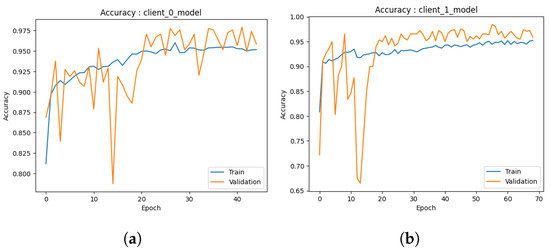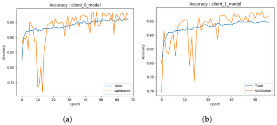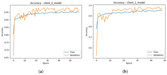 Figure 8b, the training accuracy demonstrates convergence at approximately 90%. However, the validation accuracy exhibits convergence at approximately 95%. This indicates that the model exhibits good performance in the training and validation data and remains a commendable model in its entirety. The graph additionally illustrates that the accuracy of the model reaches a peak after approximately 40 epochs (which is due to early stopping criteria). This implies that the model’s learning capacity diminishes beyond this juncture with respect to the training data. The potential exists for enhancing the model by augmenting the number of s. Both models exhibit robust performance with high levels of accuracy.