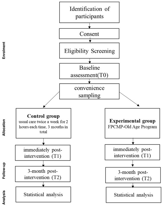 This quasi-experimental and single-blinded trial with a non-equivalent control group uses a before-after design. The FPCMP-Old Age program trial will take the form of a non-randomized, two-group (experimental and control group) trial, with repeated measures at three time-points to improve the community effects of different levels of frailty, health function, and nutrition (Table 1). Cluster RCTs are increasingly used, particularly in primary care research [28], in which groups of participants rather than individual participants are randomized. However, practical challenges remain, such as an increased sample size and complex recruitment procedures. Due to time and resource limitations, this study did not choose to use cluster RCT at the level of communities.