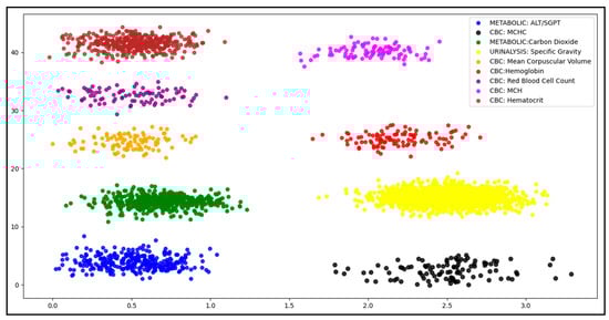 In [], the researchers applied a machine learning clustering algorithm to handle the clustering of vertically partitioned data among various healthcare organizations or data providers. The study of T. Aldhyani et al. [] proposed a k-means clustering algorithm to identify the ambiguity in chronic disease datasets to improve the system performance. Similarly, M. Elbattah et al. [] used supervised and unsupervised machine learning techniques to support decision-making concerning elderly healthcare in Ireland. They also used the k-means clustering algorithm to group the elderly patients based on various factors, such as length of stay, age similarity, elapsed time to surgery, etc. A. Alsayat et al. [] used various machine learning clustering algorithms to cluster healthcare data for knowledge discovery. Additionally, the study of G. Ogbuabor [] analyzed various clustering techniques using healthcare datasets and compared their results. They particularly focused on the results of DBSCAN and k-means algorithms.