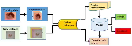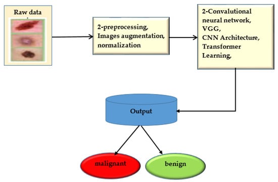 Skin cancer is a term used to describe a group of diseases in which abnormal skin cells grow uncontrolled and form tumors. These cancers are primarily brought on by unprotected skin damage to UV (ultraviolet) rays []. Melanomas make up just one percent of skin cancers. Skin cancers or basal cell carcinomas make up the remaining cases []. Due to its widespread occurrence and the potential for huge consequences, HPV is a significant health concern in the United States. In the United States, about five million different skin diseases are thought to be recorded annually. The rate of skin cancer has increased since the 1970s. Specialists use a variety of methods to find skin cancer []. To determine if a lesion is malignant, a trained physician will frequently use a predefined set of criteria, such as looking for concerning lesions, performing a dermoscopy, and then performing a biopsy. It could take some time before the person advances to the next level. Dermoscopy has improved the absolute accuracy of picture identification by fifty percent, from seventy-five to eighty-four percent. A doctor’s skills are also essential to making an appropriate diagnosis. For those who have skin conditions, manually diagnosing them is challenging and time-consuming []. Dermoscopy procedures can be analyzed using computer-assisted diagnosis when a certified expert is not accessible because of limited expertise. The differences between samples and researchers can be minimized with the help of automatic categorization. There were two major problems with the most effective computer-assisted skin-related picture categorization systems: insufficient data and the way the photos were taken. With today’s methodologies, significant preprocessing, segmentation, and feature extraction was necessary before skin image classification. AI-related changes are similar to those brought about by widespread technological adoption. Machine learning (ML) technology can be used for classification tasks rather than manually extracting features. You can save time and effort by doing this. More people are now trying to use ML methods to diagnose cancer, a recent trend. Machine learning algorithms have improved cancer prediction accuracy by 15% to 20% over the last two decades. Artificial intelligence’s deep learning discipline is fast growing and has many possible applications. One of the most powerful and widely used machine learning (ML) techniques for recognizing and categorizing pictures is deep learning, using specifically convolutional neural networks (CNNs), which are powered by state-of-the-art computational algorithms and massive datasets. Traditional ML techniques, which demand a lot of background knowledge and lengthy preparation stages, are no longer frequently used. Deep learning-based classifiers can identify skin cancer in images just as effectively as dermatologists. CNN’s can aid in developing computer-aided categorization systems for skin lesions used by dermatologists. There are not enough training sets for high-quality medical images, though. This is mostly due to a lack of photos of rare classes that are sufficiently annotated and described. Standard CNNs are less likely to work successfully with small data sets. There is a significant problem with processing costs for therapeutic applications because some researchers utilize exceptionally deep CNN models (Resnet152, for example, has 152 layers), which improve network classification performance. In addition, researchers use CNNs that have been trained to categorize skin lesions. By doing this, data overfitting is avoided. Features obtained from real-world photo datasets are added to trained convolutional neural networks (CNNs) (such as ImageNet). Additionally, CAD makes identifying and treating tumor diseases easier and more cost-effective. Imaging methods such as MRI, PET, and X-rays are often used to diagnose organ problems. Skin lesions were initially identified visually; CT, dermoscopy image processing, clinical screening, and other methods allowed this. Less experienced dermatologists are more likely to misdiagnose skin lesions. The procedures used by doctors to review and understand images of lesions take a lot of time and are often subjective and inaccurate. This is mostly because it is challenging to describe skin problems on camera fully. Knowing precisely where pixels are situated within skin lesions is crucial to analyzing images and diagnosing problems with lesions []. The ability of CADI and CPS systems to identify skin cancer has considerably increased with the integration of machine-learning approaches to computer vision. Image preprocessing and lesion image categorization are two of the most important elements in cancer detection and diagnosis. However, the outcome and mortality rates of skin cancer must be improved through early detection. For diagnostic tests or assessments of patient response to therapy (such as for cancer), this approach is unsuitable. To enhance and speed up the diagnostic decision-making process, many doctors are using AI in medicine []. Most artificial intelligence research for clinical diagnosis has either ignored or inadequately addressed the necessity for accurate assessment and reporting of future problems, even though there have been encouraging signals of development in this field. Numerous diseases can be recognized quickly, precisely, and consistently using computer-aided design []. Additionally, CAD makes identifying and treating tumor diseases easier and more cost-effective. Imaging methods such as MRI, PET, and X-rays are often used to diagnose organ problems. In the past, methods such as clinical screening, computed tomography (CT), dermatoscopy image processing, and others were used to detect skin lesions. Dermatologists with less experience are less proficient in correctly diagnosing skin lesions. The procedures used by doctors to interpret and analyze images of lesions take a lot of time and are often s