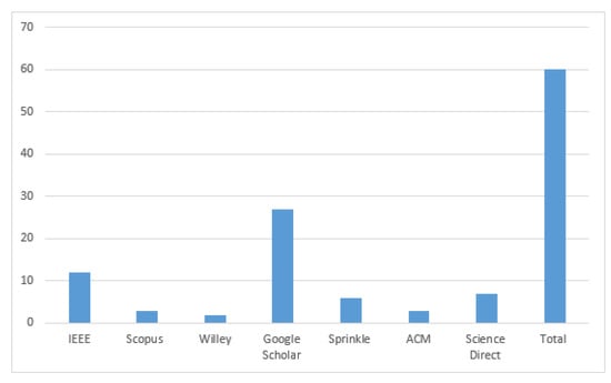 Keywords are important words used to describe the subject and field of study in the titles and abstracts of research articles. The literature is searched using keywords to obtain solutions to the study questions. The literature is retrieved from the database and other sources using these keywords. There is a list of the keywords that were used to discover the primary studies for this SLR in the “Abstract” section. Finding out what keywords are most commonly used is the first step in developing a search strategy. To locate the primary keywords, the search begins by looking at the papers of well-known scholars. These keywords, as well as phrases that are similar to them, make up search queries. The research process is made more accessible by using the provided keywords. If you use the appropriate terms, your research will move much faster. The search query process is presented in Table 3.
