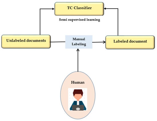 This study presents a semi-supervised learning technique using two iterations of preprocessing and segmentation to separate lesions from dermoscopy images autonomously. Non-linear regression and the CLACHE algorithm are used to fix the image’s unequal lighting during the preprocessing stage of picture scaling []. by classifying pixels according to how their RGB color space appears, k-means clustering is used to increase the lesion prediction’s accuracy. A unique strategy is suggested for finding lesions that combine deep learning and local description encoding. A wide range of feature values that can be applied to different lesions can be quickly generated using this model. The publicly available ISBI 2016 dataset was used to assess the proposed model []. Semi-supervised learning is presented in Figure 5.