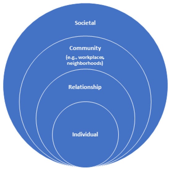 - CDC. Available online: https://www.cdc.gov/violenceprevention/about/social-ecologicalmodel.html (accessed on 15 June 2022).
