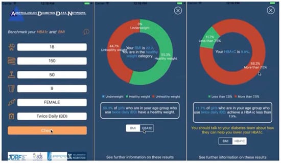 This is aligned with the more general ADDN mobile app that was developed and released to the Apple App Store and Google Play as shown in Figure 5. Here, individuals include their age, height, weight, HBA1c, gender and treatment information. This then compares them with other patients in the registry in their demographic and treatment profile.