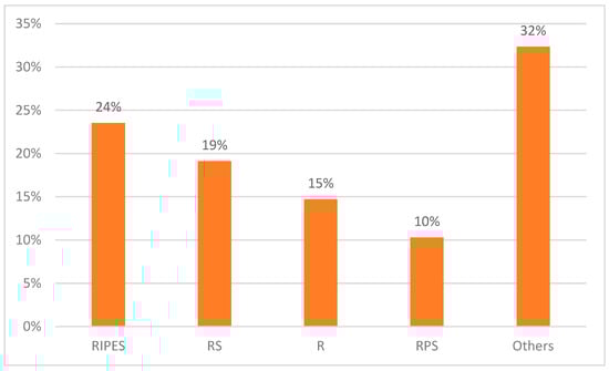 In Figure 2, it can be observed that 68 participants responded yes to the question on stocking anti-TB medication for the treatment of prolonged cough. There was a total of 20 different types or combinations of anti-TB drugs reported as stocked by CPs and PMVs. Of these, 3 (15%) were single anti-TB drugs (isoniazid, rifampicin and streptomycin), while 17 (85%) reported a combination of anti-TB drugs (e.g., RIPES, RPS, RS, RPES, RES, RI, etc.). CPs and PMVs mostly stocked a combination of RIPES, 16 (24%); followed by RS, 13 (19%); and rifampicin, 10 (15%).