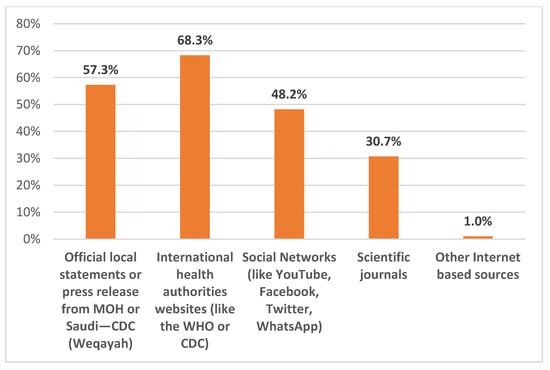 An important area to be considered in the awareness and educational programs is the source of Mpox information. In this study, the majority of respondents reported the reliance on trusted sources of information (e.g., the WHO and CDC websites, the MOH website). However, it was noteworthy to find that almost half of the participants used social networks as a source of updates regarding Mpox. This should be considered carefully, considering the previous evidence of the easy spread of misinformation regarding infectious diseases through social media outlets, which was noticeable during the COVID-19 pandemic [40,41]. In line with this concept, conspiracy beliefs regarding Mpox among emerging infections were noticeable from the early days of the Mpox outbreak declaration [25,28,36,42]. The importance of the source of Mpox information was revealed in our results; we found better Mpox knowledge in the multivariate analysis if the source of information was based on scientific journals or the international health authorities’ websites (the WHO, CDC).