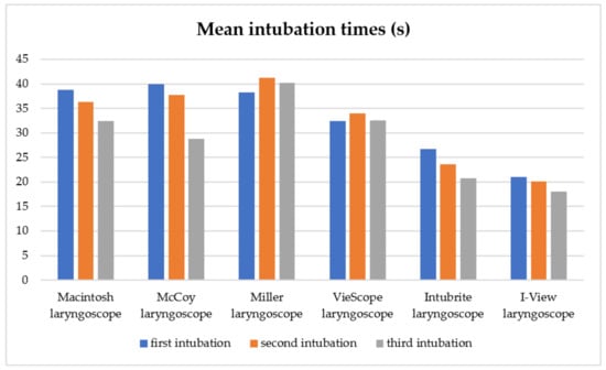 Graph of mean intubation times with a given laryngoscope in subsequent intubation attempts.
