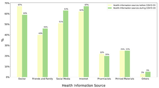 However, for the United Arab Emirates (UAE), there are no published results regarding primary or secondary general sources of health information. However, a study conducted by Figueiras regarding COVID-19 information resources exclusively found that only 20% would consult a physician [12]. Hence, understanding the different sources of health information used and the level of trust by the population in the UAE is necessary for helping individuals make informed medical decisions and evaluating healthcare options. Therefore, the aims of this study were to (a) evaluate the different information sources used by the population in the United Arab Emirates and their trustworthiness, (b) the impact of COVID-19 on the health information sources, and (c) explore the Internet as a health information source.