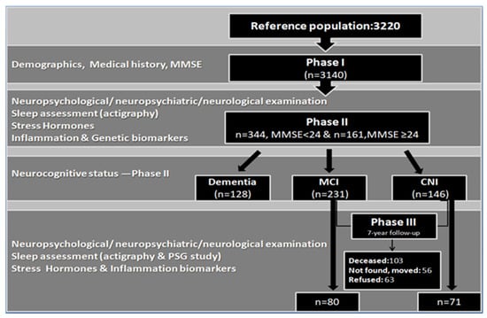 Basta, M.; Skourti, E.; Alexopoulou, C.; Zampetakis, A.; Ganiaris, A.; Aligizaki, M.; Simos, P.; Vgontzas, A.N. Cretan Aging Cohort-Phase III: Methodology and Descriptive Characteristics of a Long-Term Longitudinal Study on Predictors of Cognitive Decline in Non-Demented Elderly from Crete, Greece. Healthcare 2023, 11, 703. https://doi.org/10.3390/healthcare11050703