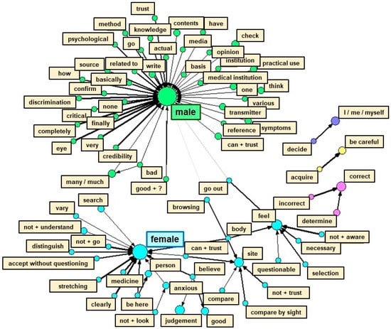 | Responses of male students | Looking at information with a critical eye | ・Health information obtained from social networking sites and personal blogs is first analyzed with a critical eye. ・I am always critical of information, no matter what medium it comes from ・I try to be scientific and critical about information when the source is not clear. |