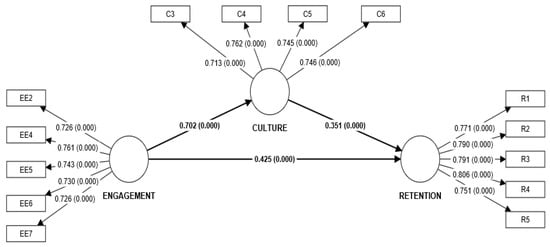 To evaluate the significance of the relationship, the hypotheses were tested. H1 assesses if the impact of employee engagement on retention is significant. The results revealed that employee engagement has a significant impact on retention. Hence, H1 is supported. H2 evaluates whether employee engagement has a significant impact on culture. The findings show that employee engagement significantly affects culture. Hence, H2 is supported. H3 evaluates whether culture has a significant impact on retention. The results of the study revealed that culture has a substantial impact on retention. Hence, H3 is supported.