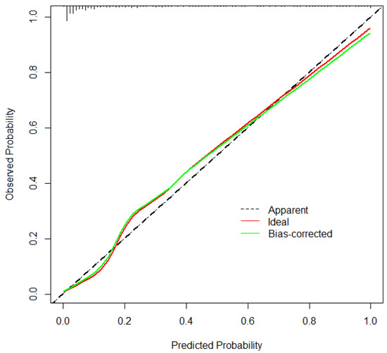 Calibration curve for predicting probability of BPD in preterm infants. Abbreviations: BPD, bronchopulmonary dysplasia.