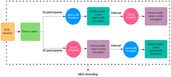 BB is a technique that is growing in popularity among neuroscientists. Among the sparse and controversial studies found in the literature, only Mujib et al. [19] investigated gamma-BB stimulation with EEG and working memory performance analysis, similar to our approach. However, our study presents some improvements, such as the presence of a control condition with a potential placebo effect, besides a detailed cross-over experiment with new approaches for signal processing.