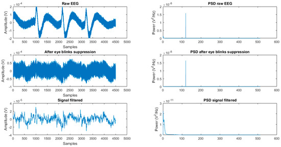 Figure 2 shows the raw EEG signal and the results after applying the ITMS algorithm and filtering in the pre-processing stage.