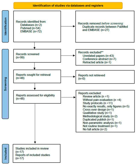 - Cheong, Y.C.; Smotra, G.; Williams, A.C. Non-surgical interventions for the management of chronic pelvic pain. Cochrane Database Syst. Rev. 2014, 3, CD008797. [Google Scholar] [CrossRef]