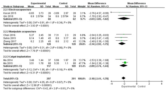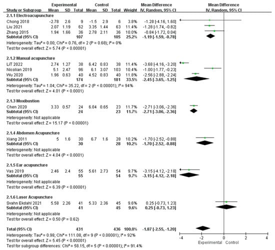 3.4.2. Subgroup Analysis of Acupuncture Interventions