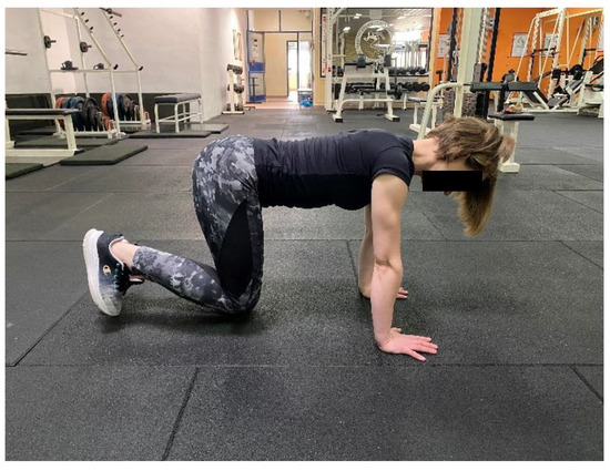 - Stevens, V.K.; Vleeming, A.; Bouche, K.G.; Mahieu, N.N.; Vanderstraeten, G.G.; Danneels, L.A. Electromyographic activity of trunk and hip muscles during stabilization exercises in four-point kneeling in healthy volunteers. Eur. Spine J. 2007, 16, 711–718. [Google Scholar] [CrossRef]