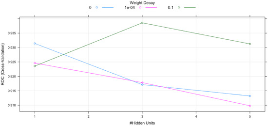 For the realization of the ANN, the number of hidden layers was three and the decay rate was 0.1. Figure 4 shows the 10-k cross-validation method used to optimize the ANN parameters.