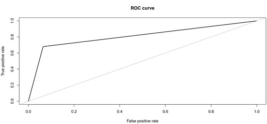 A ROC curve (Figure 5) was performed on the results of the test sample. The curve showed the performance of the described algorithm in contrast to a random allocation.