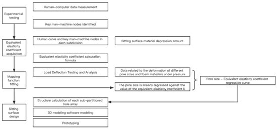 This study was conducted in three stages. (1). First, pressure distributions on products available on the market were measured. In addition, combined with the subjective comfort evaluation of the subjects, the relatively ideal pressure distribution matrix was obtained through calculation. The zones were then determined by clustering. (2). Next, based on the zone support requirements, the hole array in the elastic support material (memory foam) was mapped out, and the prototype was made. The specific process is shown in Figure 1. (3). Finally, a back-testing experiment is conducted on the prototype model to observe the sitting comfort of different groups so as to verify the relevant knowledge extracted from the model.