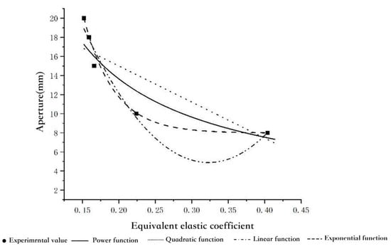 The pore diameter is used as an independent variable to fit linearly to the equivalent elastic coefficient k value, as shown in Figure 11. The exponential function that has good goodness of fit is shown below: