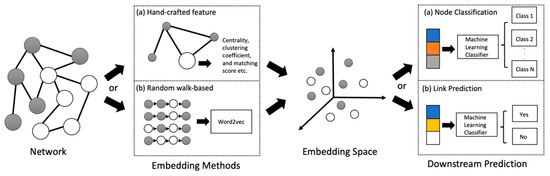 - Grover, A.; Leskovec, J. node2vec: Scalable feature learning for networks. In Proceedings of the 22nd ACM SIGKDD International Conference on Knowledge Discovery and Data Mining, San Francisco, CA, USA, 13–17 August 2016. [Google Scholar]