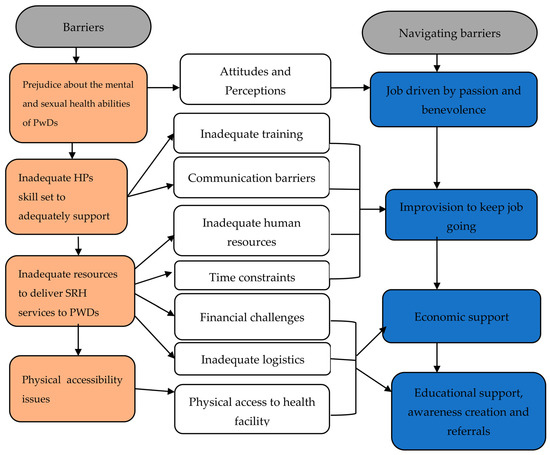 Four themes were identified in relation to the participant’s strategies in overcoming some of the bottlenecks encountered in SRH services delivery to PwDs: (a) the job is a calling driven by compassion and benevolence towards PwDs; (b) improvision to keep the job going; (c) supporting financial needs of PwDs; and (d) educational support, awareness creation and appropriate referrals to avoid complications.