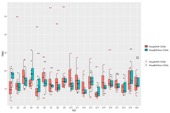 Moreover, when VCDA was applied, the difference in time before and after was statistically analyzed. The results showed that Group A experienced an almost statistically significant difference (p = 0.05), but Group B did not (p > 0.05).