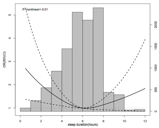 Restrictive cubic spline diagram between sleep duration and hip fracture.